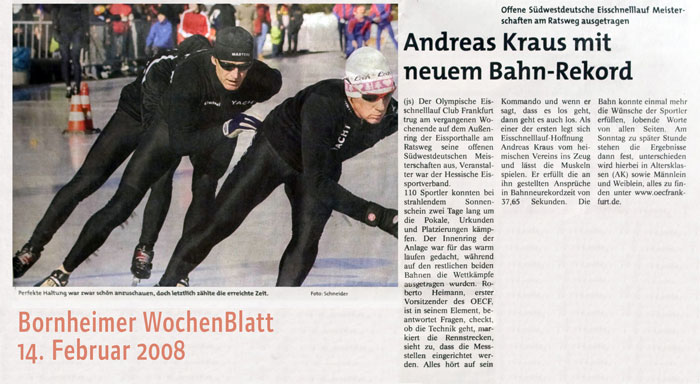 Bornheimer WochenBlatt, 14. Februar 2008, Bericht ueber die Suedwestdeutsche Meisterschaft 2008. Pressebericht.